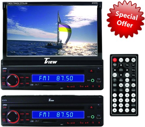 Brand New Tview D74TS 7" In Dash Single Din Multimedia Car DVD/VCD/CD/MP3/MP4 Player w/ USB + Bluetooth Features: 7" In-Dash Single Din Monitor 16:9 Aspect Ratio Wide Screen High Resolution Display DVD/VCD/MP4/JPEG/DVIX/VMA/MP3/CD-R/DVD-R/DVD-RW IPOD Cable Included IPOD Ready Built in Bluetooth (A2DP) This allows you to stream audio files to the receiver from your cell phone or a bluetooth MP3 player Caller ID Built in AM/FM Radio 30 Preset Stations Built in Amplifier Loudness Setting (on or off) USB Port RDS Radio Tuning SD MMC Card Slot Memory Play back function for the DVD player Full Functional Wireless Remote Control Backup Camera Input RCA Aux Audio / Video Input Audio / Video Output 3 sets or pre-amp outputs (front, rear, and subwoofer) Interactive Touch Screen DVD Menu Navigation All-In-One Design Entertainment System pal/ntsc anti-shock memory custom EQ with 4 Preset curves and 3 bands of control and a custom EQ EQ can be set to rock, pop, classical, etc US / European AM/FM Tuning 4-8 ohms impedance amplifier back up camera input Memory back up Touch screen controls with all new user interface Region Free DVD Player works with DVD's worldwide! Brand new panel with wide screen TFT-LCD active matrix Display Both A/V inputs and outputs On Screen Menu Display Last scene DVD memory Adjustable Picture settings (color, contrast, brightness, etc)