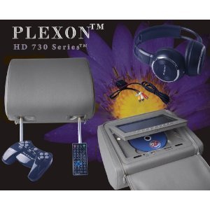 Headrest 7" LCD Car Monitors with Region Free DVD player USB SD Inc. Wireless Headhones and 32 Bit Games (Gray, Pair)