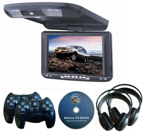 New Gray 9" Overhead Flip Down Roof Mount LCD Car Monitor Package With DVD Lcd with 2 Wireless 32 bit game Controllers: Game Disk. No messy wires everywhere in your car anymore, your children will enjoy the games much more. You have the luxury to go on those long road trips and have the kids completely entertained and quiet during the trip. FM Transmitter: Easy to connect to your quality sound system on your car without hassle: It's just another convenient thing to connect your AV devices directly 9 inch Brand TFT LCD screen: Now you can enjoy high quality movies/DVD with this SHARP screen with enough brightness. USB connectivity, SD/MMC/MS card reader: . easy installation: Contents: Roof Mount Over head 9" LCD monitor + all-region DVD player (plays all dvd's of any format) + Game Discs x Wireless Remote Control 2 x Wireless Game controllers. 9-inch high-definition TFT LCD 16:9 screen Use is Sony lens and Electronics Game function, include 32 bit games with joystick Compatible DIV-X, MP4, DVD, VCD, SVCD, CD, CD-G, MP3, JPEG, WMA, CD-R, CD-RW, and DVCD. FM transmitter function, Plays Sound Through Your Vehicles Speakers Wirelessly A/V input and output functions for connection to other devices Supports SD, MS, and MMC 3-in-1 card reader USB function 1 wireless remote control s Supports OSD display Multi-viewing angle by 350 degree rotating, 2 Dual channel wireless headphones